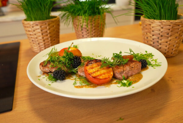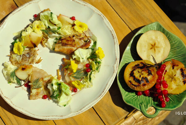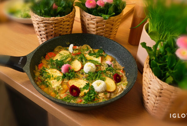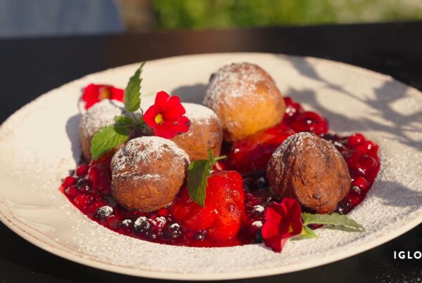 Pierogi z jagodami w kremie z różą